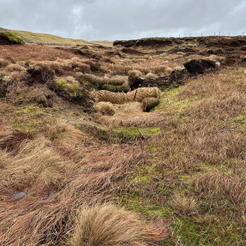 Gully and grip blocking – constructing coir, stone, timber and other dam structures across erosion features to slow flow and retain water on the bog surface.